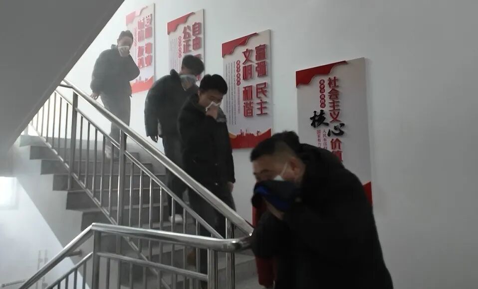随着一声火灾报警声响起,楼内烟雾弥漫,大家用毛巾捂住口鼻,沿着逃生路线迅速撤离,有条不紊的从楼道内向室外场地进行疏散,全体人员在短时间内迅速疏散到安全区域。